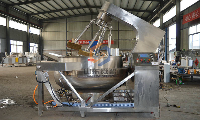 本設備特點帶有多只攪拌頭,人工操控自動炒制、鍋體可傾斜,液壓控制自動卸料、清洗簡單、易操作、省時省力提高生產量。采用背面集中排廢氣,作業舒適安全保證,另攪拌頭在鍋內攪拌方式為自轉和公轉,提高工作效率節約時間,加熱方式有煤氣燃燒供熱/電磁加熱供熱等,適用于炒制各種高粘度醬料(或烘焙)蔬菜、魚肉、調味等,常用于餐飲、烘焙、食品加工等行業。